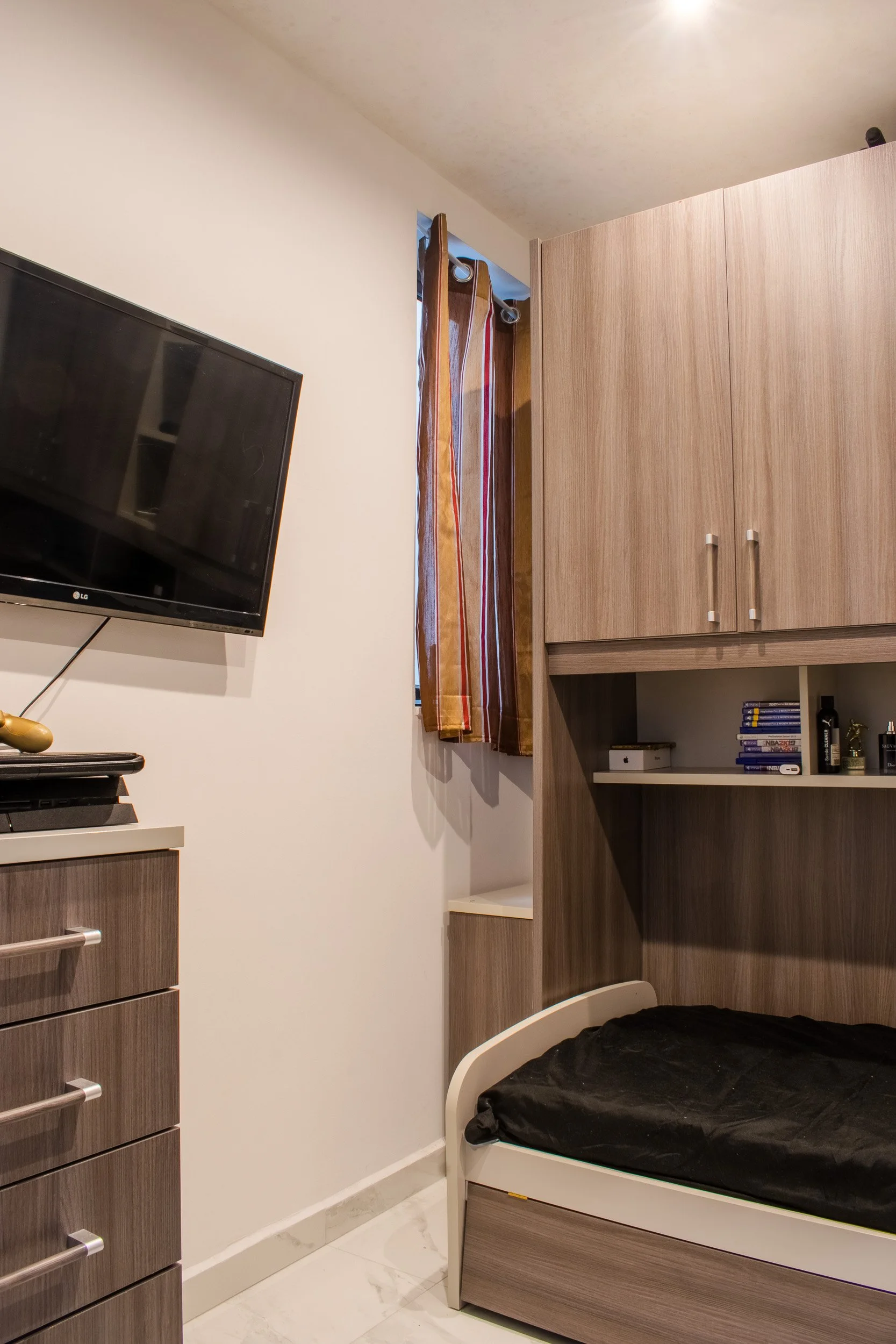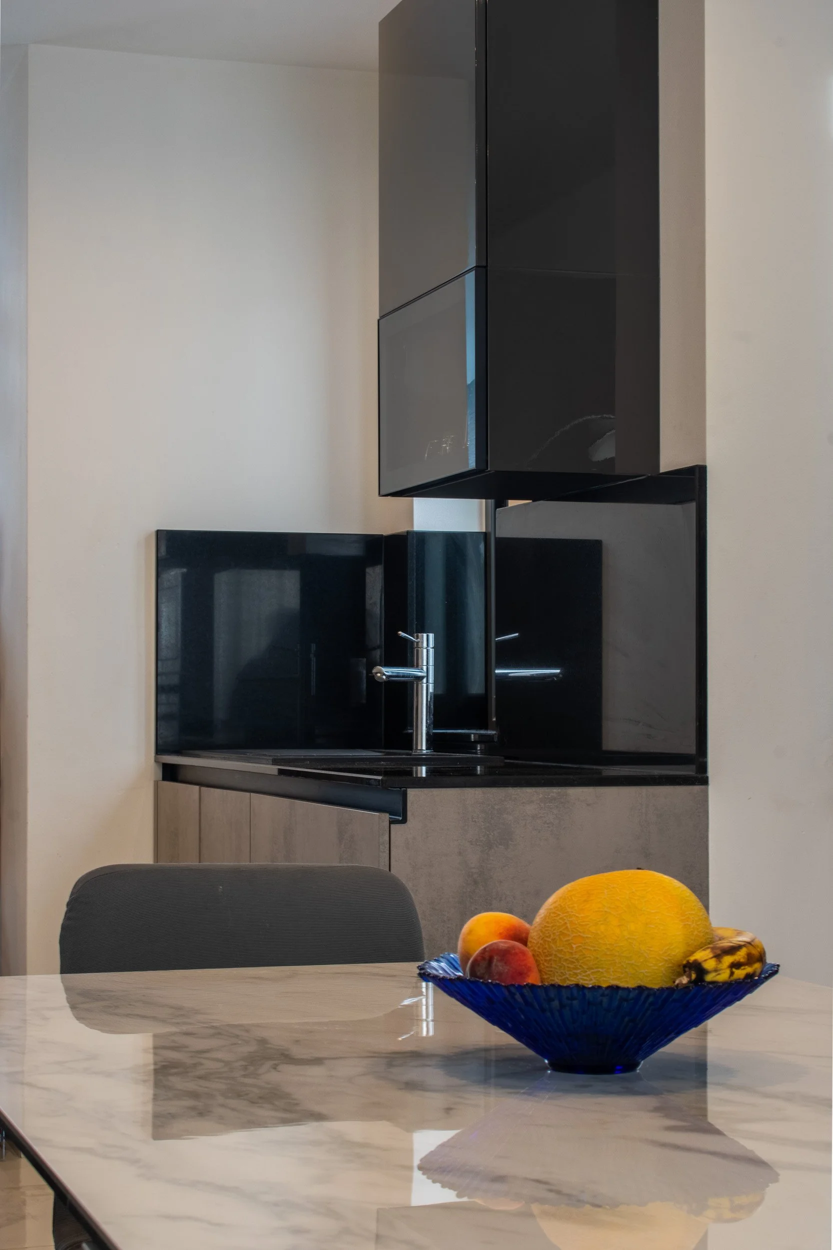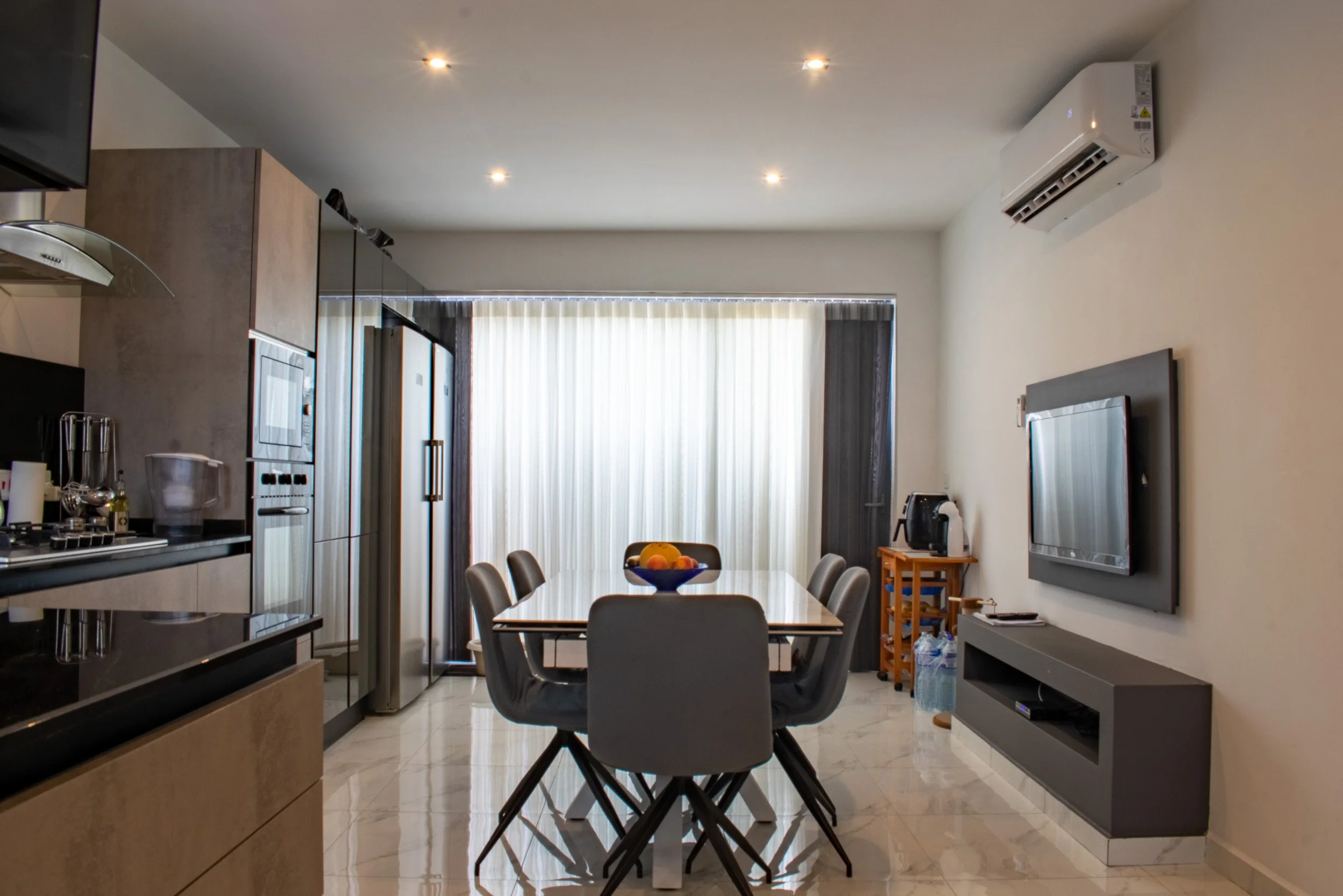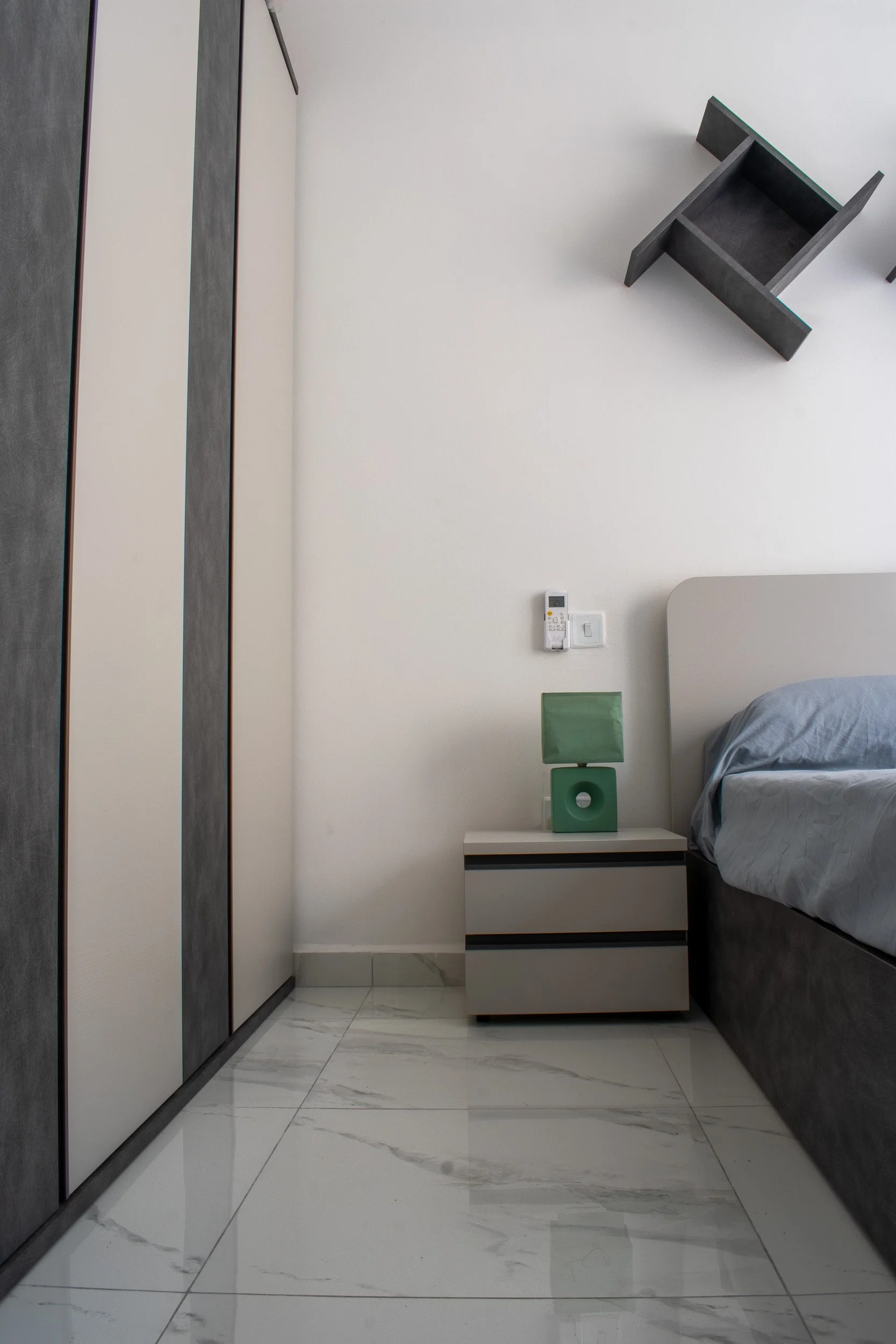 This 3-bedroom duplex penthouse project began after certain finishes, such as tiling and electrical works, were already completed. Our scope included producing 2D plans, 3D visuals, sourcing and purchasing furniture, and creating select feature walls. The overall design blends modern style with antique touches from the client’s own collection. Spaces covered included the kitchen and dining area, living room, main bedroom with walk-in, a boys’ spare bedroom, and a smaller guest bedroom. Storage solutions played a key role, with all work executed within a strict budget.