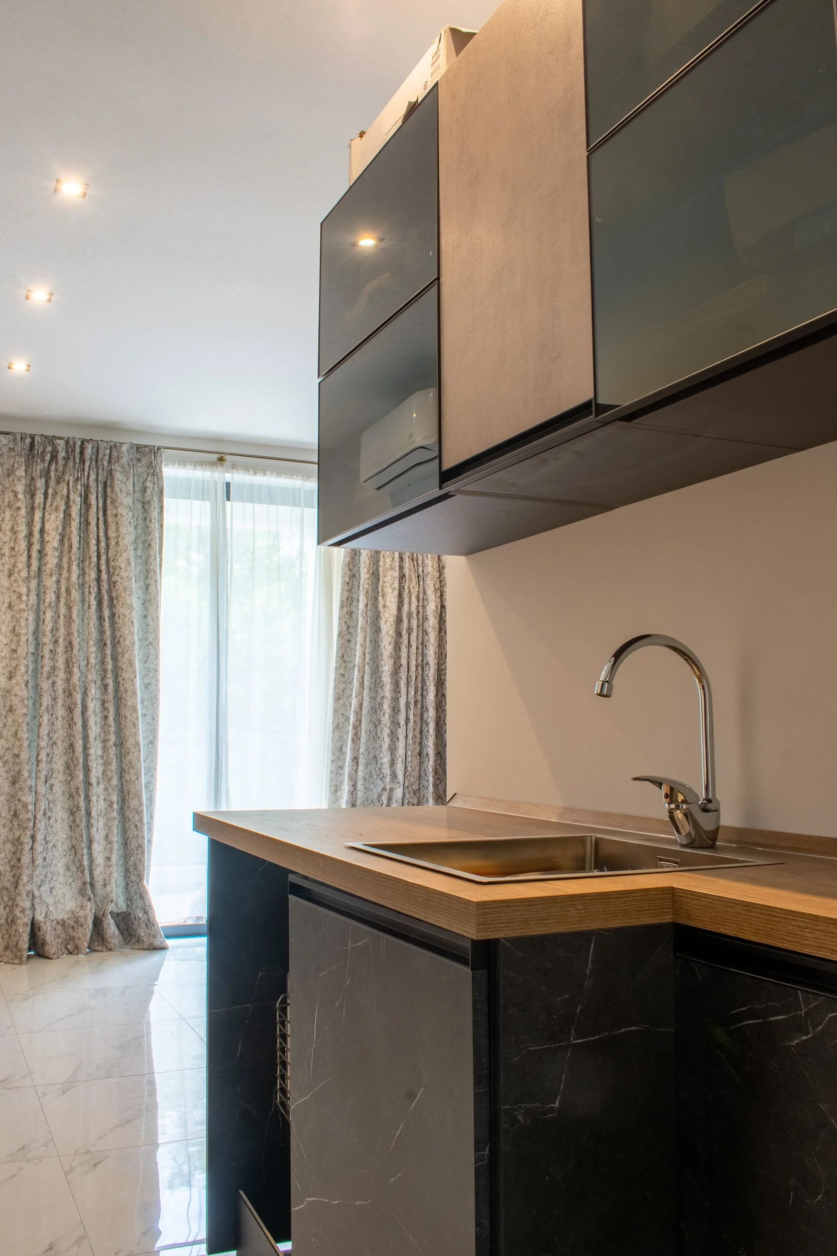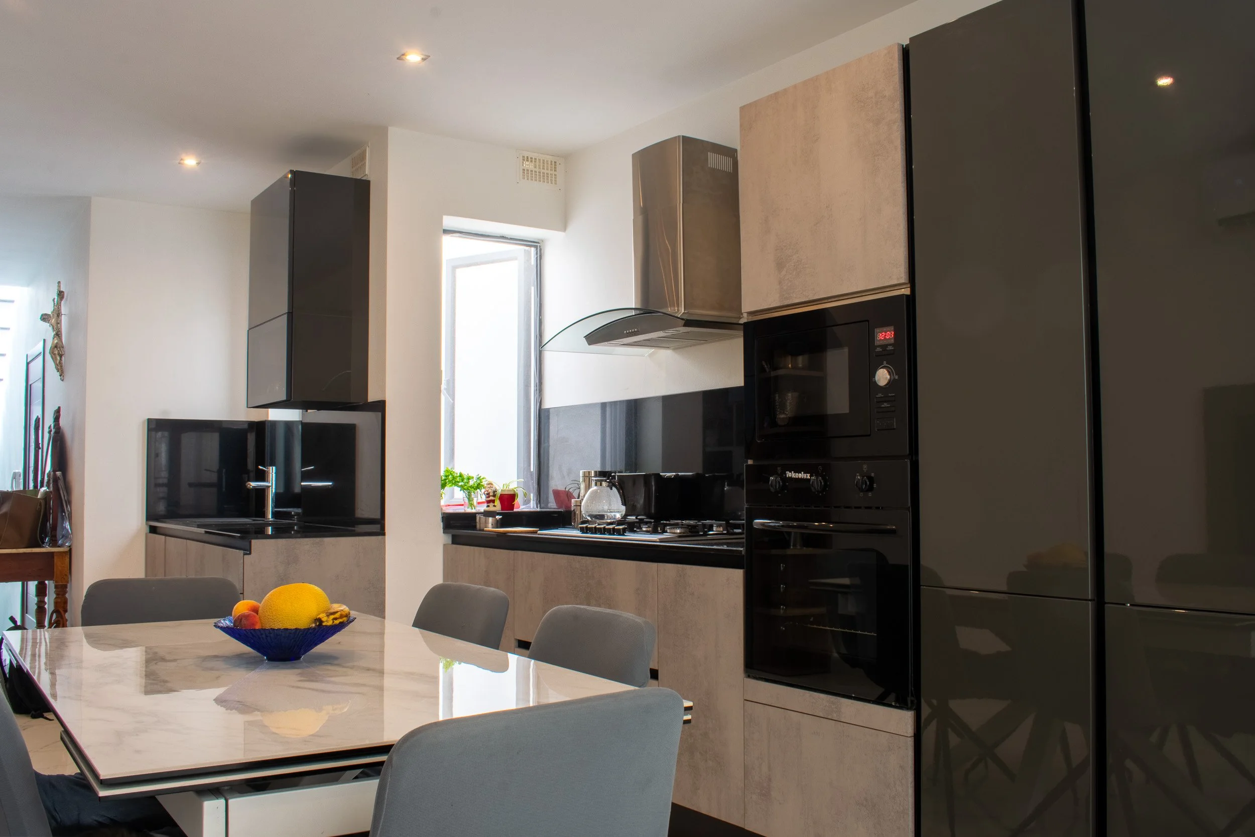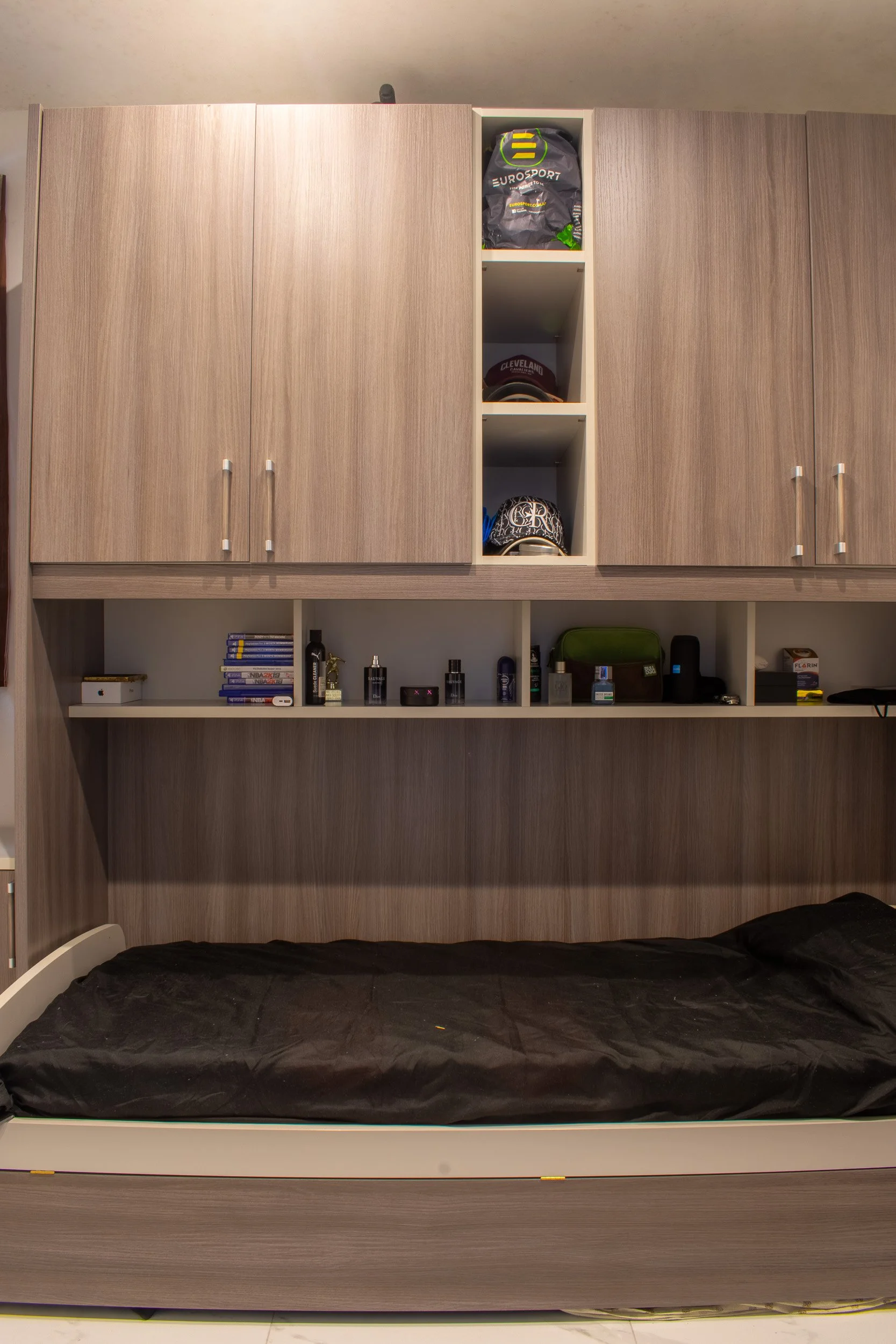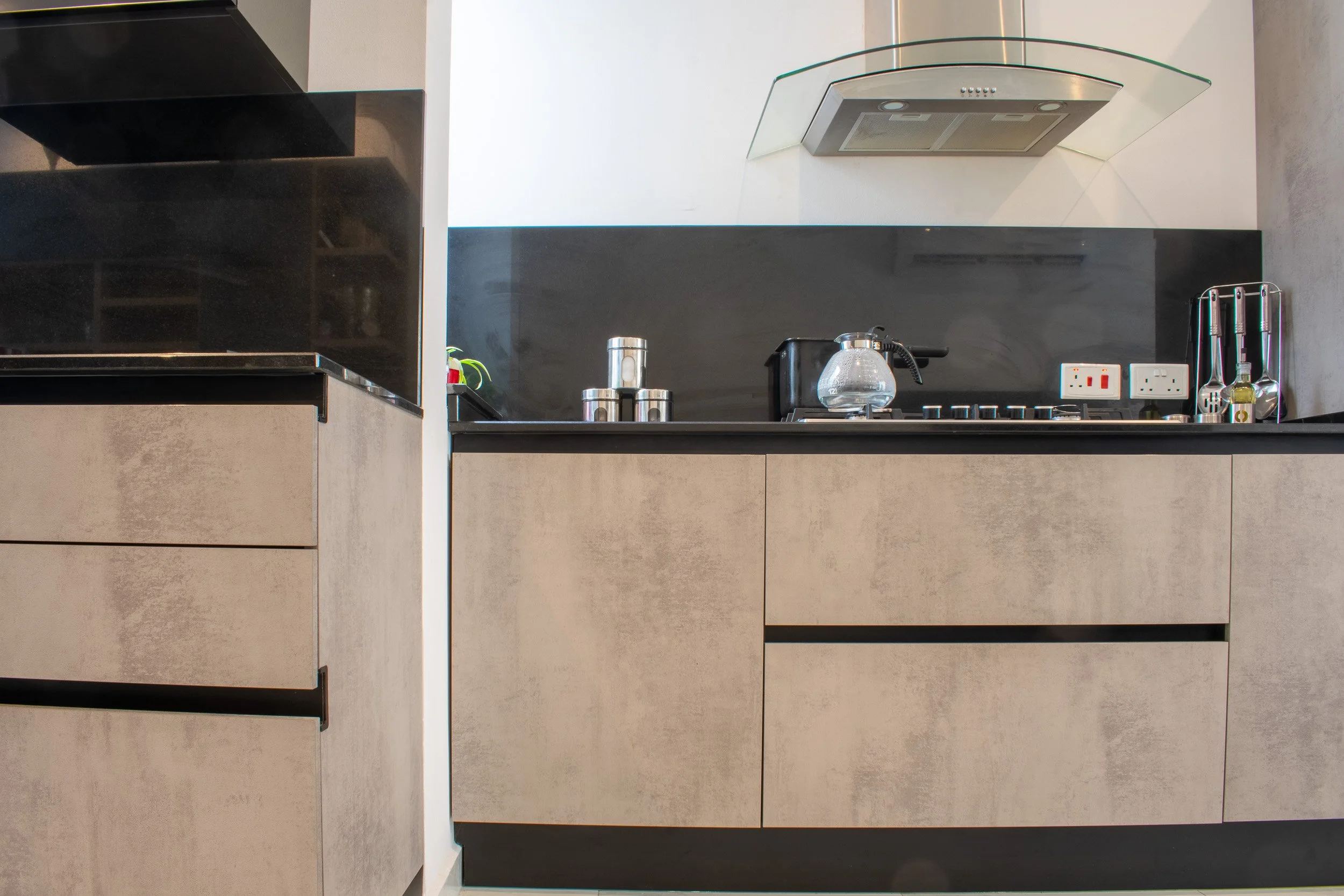 This 3-bedroom duplex penthouse project began after certain finishes, such as tiling and electrical works, were already completed. Our scope included producing 2D plans, 3D visuals, sourcing and purchasing furniture, and creating select feature walls. The overall design blends modern style with antique touches from the client’s own collection. Spaces covered included the kitchen and dining area, living room, main bedroom with walk-in, a boys’ spare bedroom, and a smaller guest bedroom. Storage solutions played a key role, with all work executed within a strict budget.